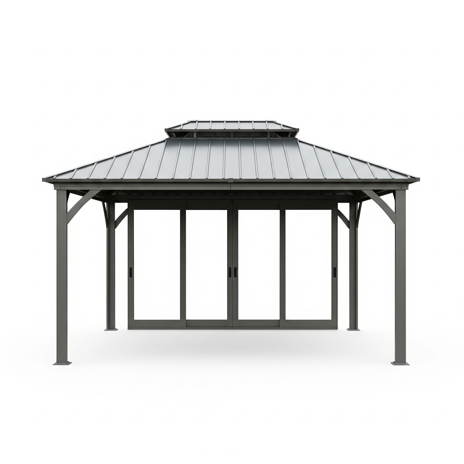Crafted with a durable aluminum frame and a galvanized steel roof, this 12′ × 14′ hardtop gazebo transforms your backyard into a refined nighttime retreat.