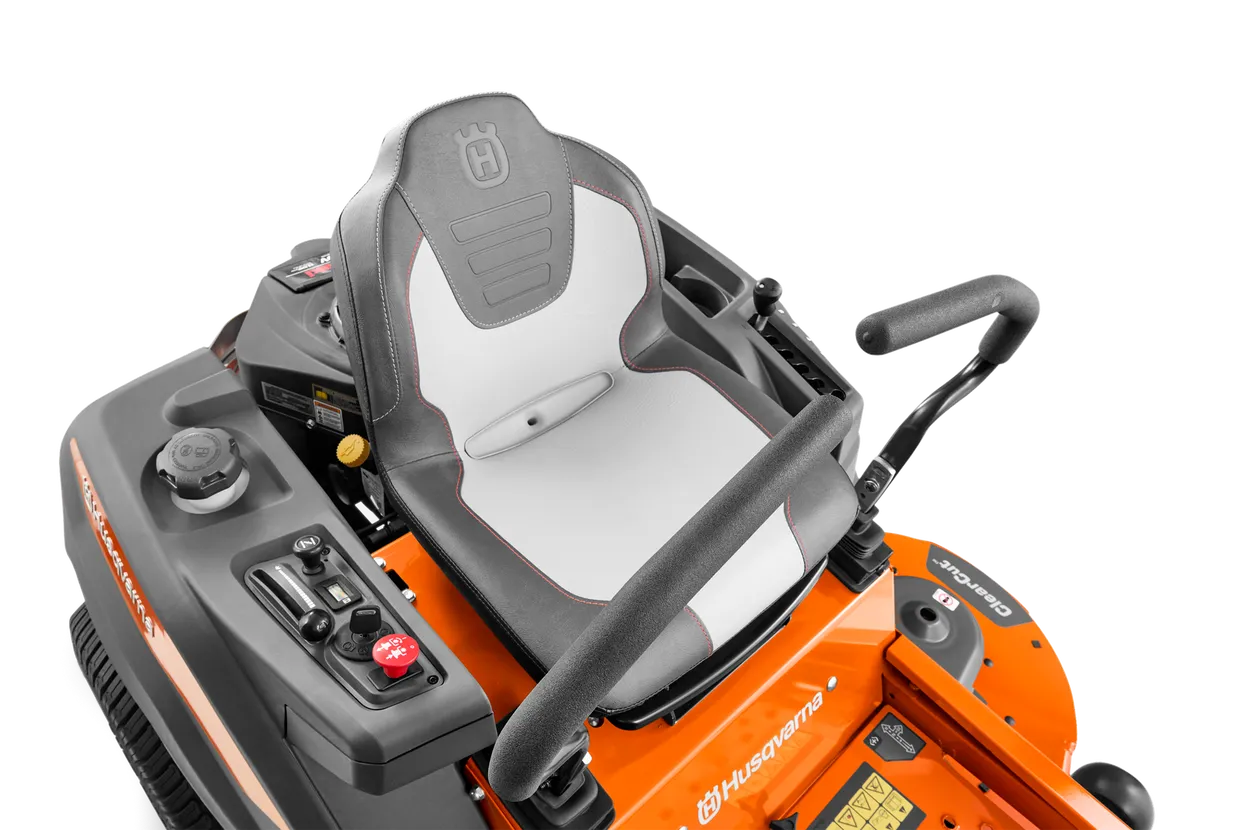 The Husqvarna Z254F Zero Turn Lawn Mower delivers high-performance cutting with a sleek design and innovative features. Built with a robust ClearCut Fabricated Cutting Deck, it boasts 10-gauge welded steel construction with reinforced strips for enhanced durability. Powered by a reliable Kawasaki engine, it ensures smooth and quiet operation. The maintenance-free, integrated zero-turn transmissions provide worry-free performance, while the ergonomic control panel places all functions conveniently at your fingertips. Additional features include a reinforced frame and casters for reduced chassis flex, enhanced lighting for safer operation in low-light conditions, and rubber bellows to prevent debris and moisture from entering the control system. Designed for durability and efficiency, this mower makes lawn maintenance effortless.